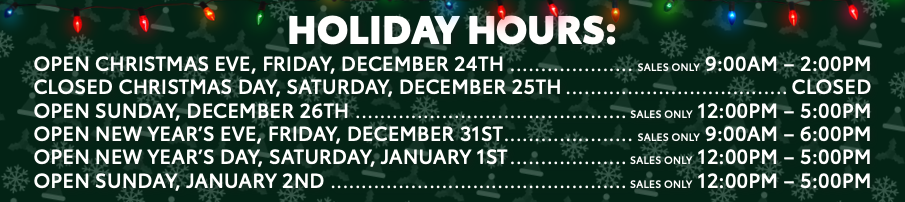 Open Sunday, January 2nd- Sales Only 12:00 PM – 5:00 PM