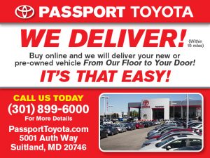 Buy online and Passport Toyota will deliver your New or Pre-Owned vehicle from our floor to your door! It’s that easy!