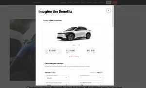 Shoppers already spend a lot of time researching their next vehicle purchase. Electric vehicle customers can face additional challenges navigating different government websites to understand the complex rules and requirements related to tax credits, rebates and incentives. The Toyota EV Incentive Finder, powered by EV Life, can quickly provide available options, offering potential pre-purchase and post-purchase incentives by deciphering which ones may apply to a customer’s unique details.