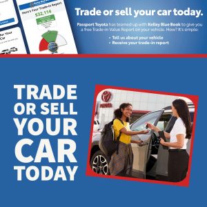 Passport Toyota has teamed up with Kelly Blue Book to give you a free trade-in value report on your vehicle. How? It’s simple: