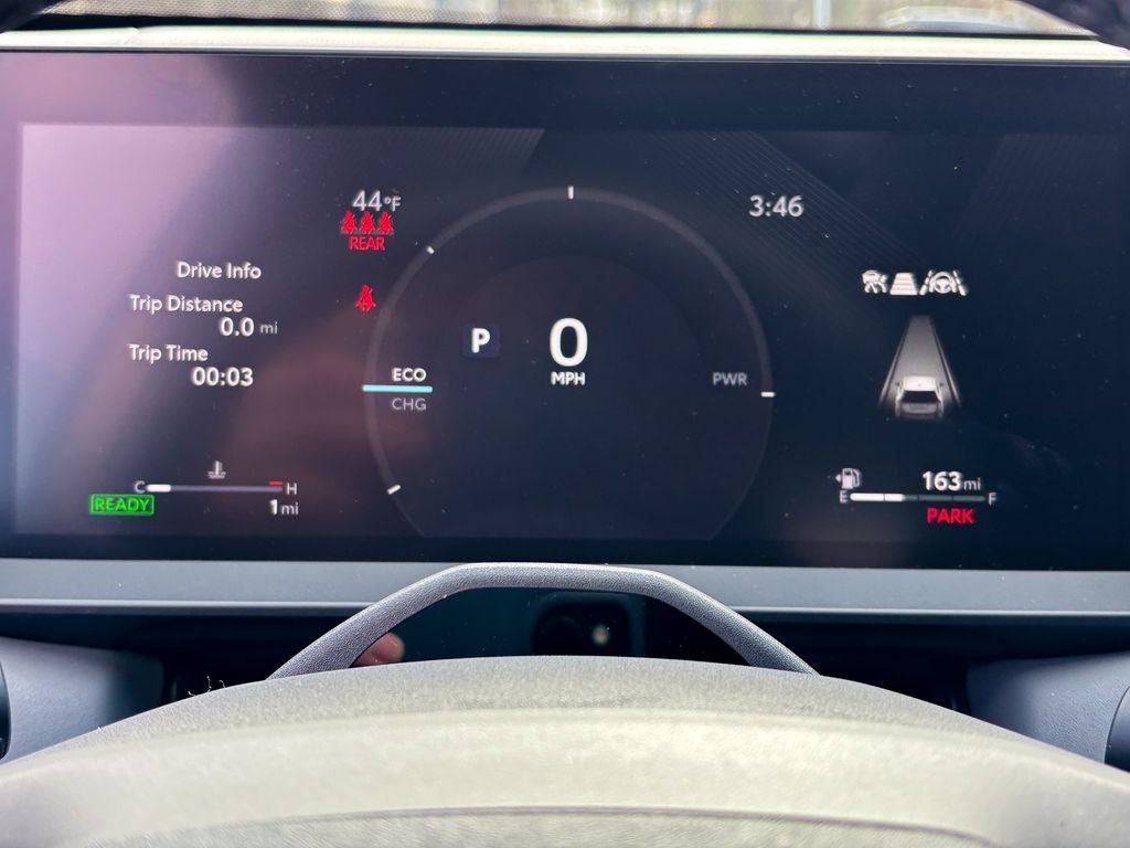 • 12.3-in. digital gauge cluster with customizable settings, integrated multimedia information, odometer, tripmeters, clock, outside temperature, rear passenger seatbelt indicators, fuel gauge, hybrid energy monitor, battery charge meter, fuel economy information, trip timer, shift-position and scheduled maintenance indicators, and warning messages