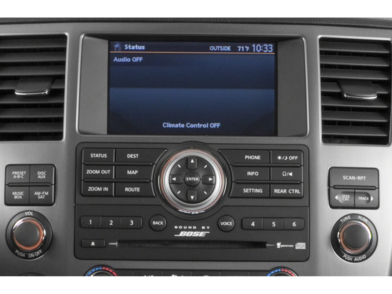 - Radio: HDD Navigation w/Voice Recognition -inc: 11 speakers plus subwoofer, 7" VGA display screen w/in-dash single-disc DVD, 2 wireless headphones, 1 remote control, SiriusXM satellite radio, auxiliary input jack, 2 USB ports, 2 VTR jacks, illuminated steering wheel mounted controls, Bluetooth® hands-free phone system, streaming audio via Bluetooth®, NavTraffic and NavWeather capabilities and Zagat Survey restaurant guide