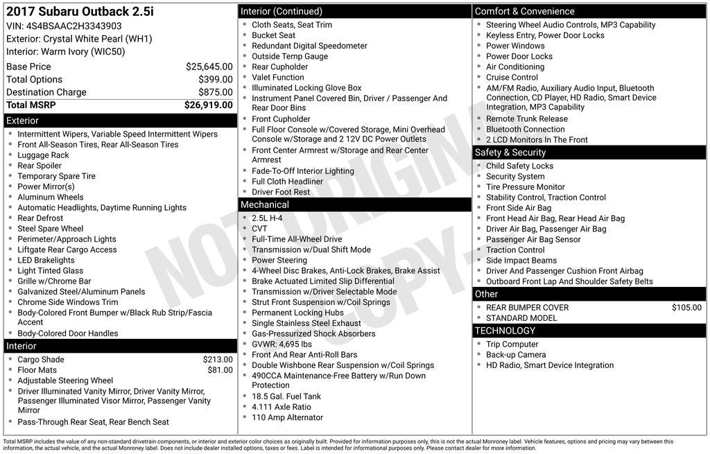 - Vehicle Name: Subaru Outback
