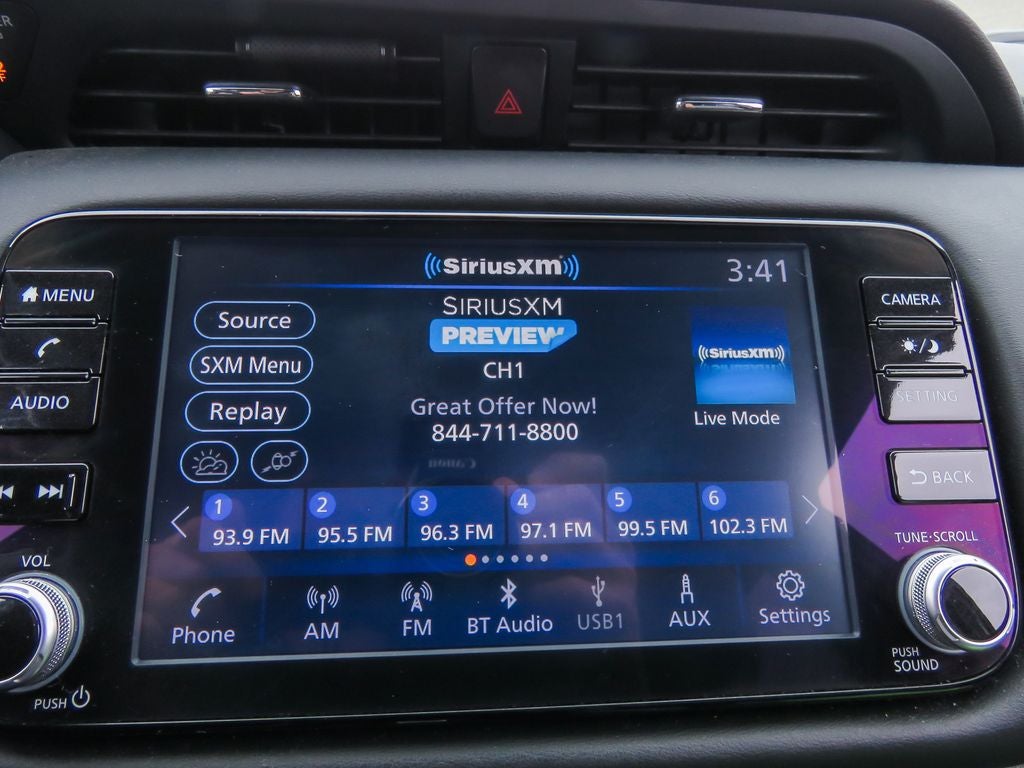 - Radio: AM/FM Audio System -inc: 8" color touchscreen display w/6 speakers, Bluetooth® hands-free phone system, streaming audio via Bluetooth®, Siri eyes free, audio and Bluetooth® steering wheel switches, 3 USB ports (2 charge only), type C USB (front), NissanConnect featuring Apple CarPlay, Android Auto, SiriusXM satellite radio w/advanced audio features and hands-free text messaging assistant