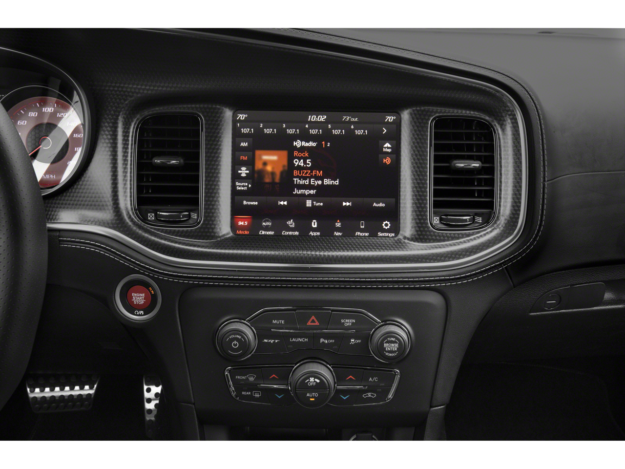 Black Artificial Leather, 1-Yr SiriusXM Guardian Trial, 19 harman/kardon GreenEdge Speakers, 2-Piece Shark Fin Antenna, 4G LTE Wi-Fi Hot Spot, 5-Year SiriusXM Traffic Service, 5-Year SiriusXM Travel Link Service, 8.4 Touchscreen Display, Alcantara Interior Package, Alcantara Steering Wheel - Red LED, Alcantara/Laguna Seats w/Logo, Apple CarPlay, Apple CarPlay/Android Auto, Black Charger Exhaust Tips, Brass Monkey SRT Exterior Badges, Compass Gauge, For Details, Visit DriveUconnect.com, For More Info, Call 800-643-2112, Google Android Auto, GPS Antenna Input, GPS Navigation, harman/kardon Audio Group, harman/kardon GreenEdge Amp, HD Radio, Heated 2nd Row Seats, Heated Front Seats, Integrated Center Stack Radio, Integrated Voice Command w/Bluetooth®, Media Hub (2 USB, AUX), Navigation & Travel Group, Quick Order Package 23T SRT Hellcat, Radio: Uconnect 4C Nav w/8.4 Display, Radio/Driver Seat/Mirrors Memory, Satin Black Charger Decklid Badge, Satin Black Dodge Tail Lamp Badge, SiriusXM Radio Service, SiriusXM Satellite Radio, SiriusXM Traffic Plus, SiriusXM Travel Link, SRT Black Package, Suede Door Trim Panel w/Map Pocket, Surround Sound, USB Host Flip, Ventilated Front Seats, Wheels: 20 x 11 Brass Monkey.