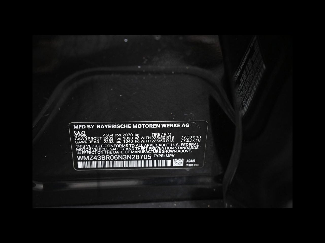 - Front Tire Size: P225/50WR18