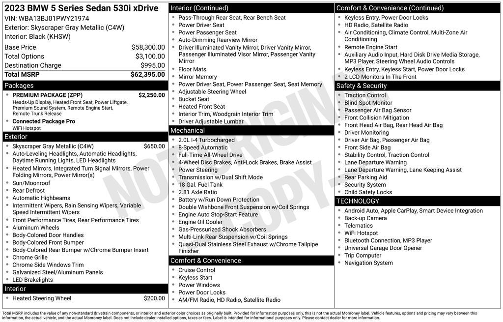- Vehicle Name: BMW 5 Series