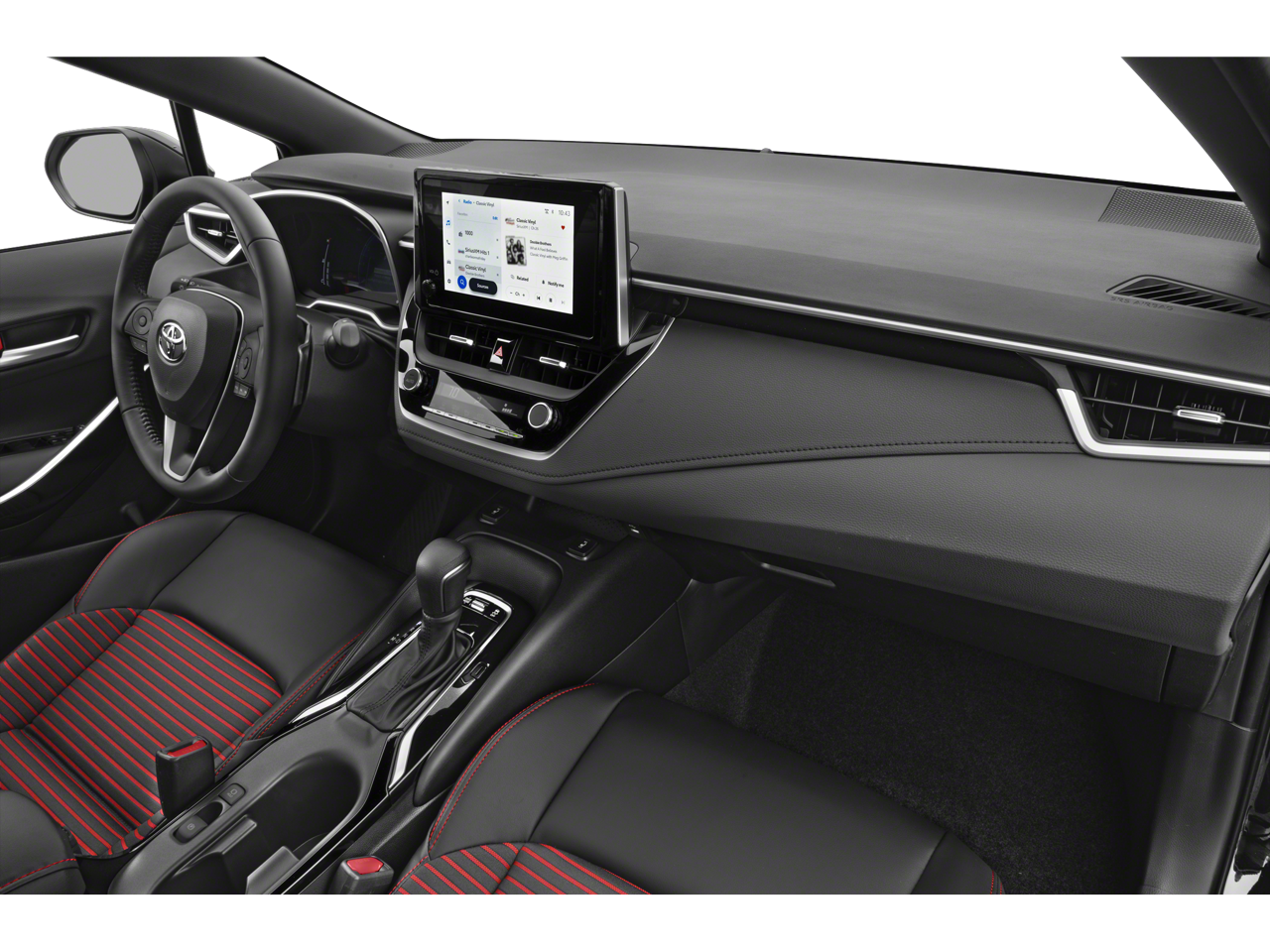 Stepping inside the cabin, you'll be greeted by a spacious and meticulously crafted interior that caters to your every need. The SofTex Seat Trim, Heated Front Sport Seats, and Front Center Armrest provide unparalleled comfort, while the 8 Toyota Audio Multimedia system with Apple CarPlay and Android Auto integration keeps you connected and entertained.